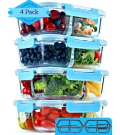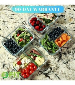 WHAT’S INCLUDED: With the purchase of this Variety Pack of Glass Food Storage Containers. you’ll get a Set of 4 airtight glass lunch containers for adults or kids: 2 of 2 compartment and 2 of 3 compartment glass containers for food storage with lids.