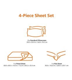 The durable sheets are easy to care for–simply machine wash on warm and tumble dry on low. Use only non-chlorine bleach as needed.