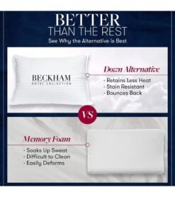 SAFE & SOUND – These fluffy Beckham Hotel Collection bed pillows are made in an OEKO-TEX Standard Certified factory that ensures textiles meet high safety and environmental standards.