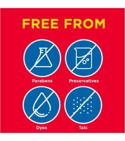 Free from dyes. preservatives. parabens and talc
