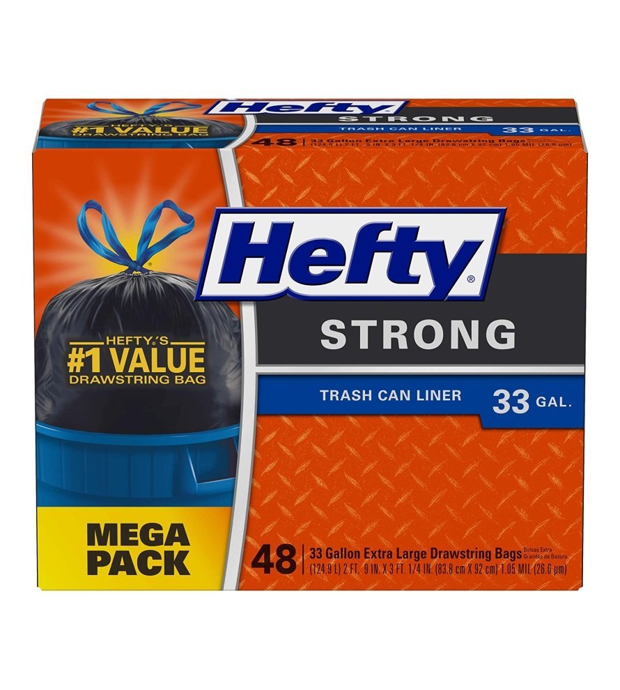 LARGE GARBAGE BAGS??This package contains 48 Hefty Strong large. black. unscented. 33 gallon multipurpose bags
