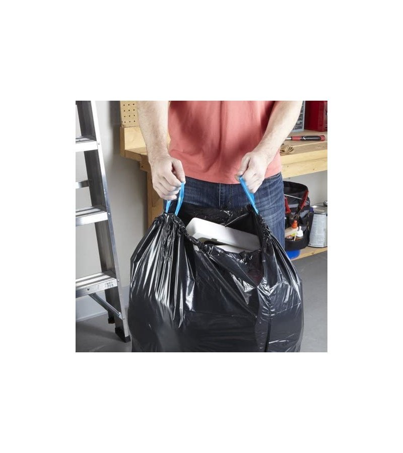 DEPENDABLE DRAWSTRING CLOSURE??The durable drawstring on these plastic garbage bags makes it easy to transport heavy loads of donations. seasonal items and more to the curb