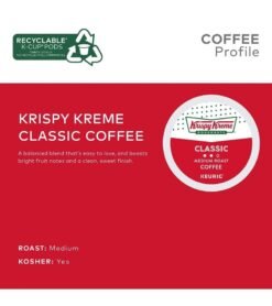 ROAST: Krispy Kreme Classic Medium Roast coffee is a balanced. easy-to-love blend that boasts bright fruit notes and a clean. sweet finish