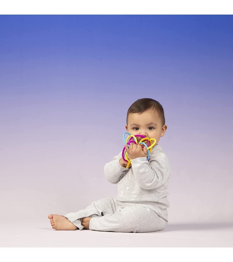 This time-honored classic is a true parent ‘must have’ and a baby ‘go to’. Its maze of soft. continuous tubes and its stunning colors instantly capture and hold baby’s attention. The mesmerizing loop design and lightweight construction make it very easy for little hands to grab. hold and rattle. The soft. pliable teething loops are perfect for teething or gumming babies.
