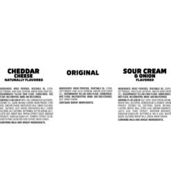 Satisfy your snack craving with the irresistible taste of original flavor. cheddar cheese flavor. and sour cream and onion flavor potato crisps; uniquely shaped and seasoned from edge to edge