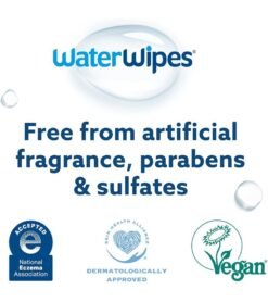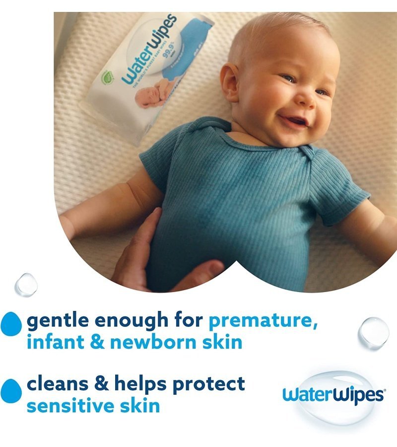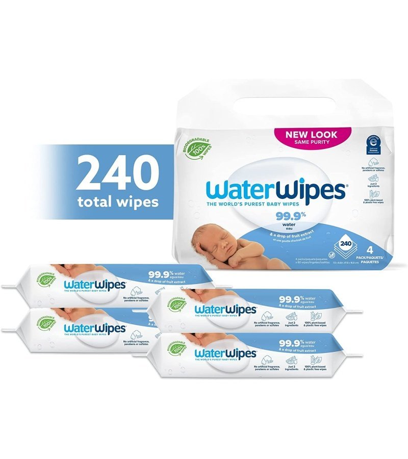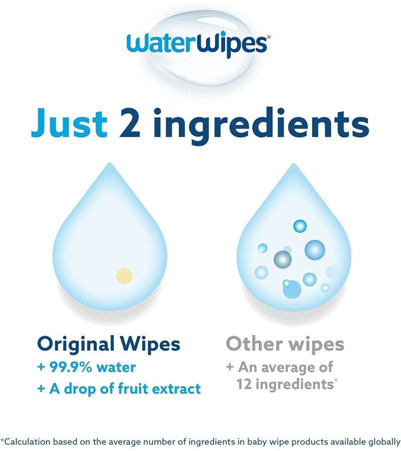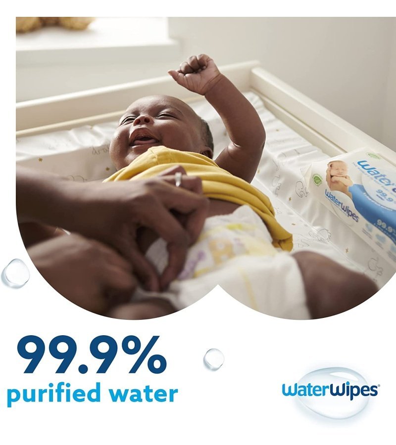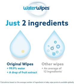 WaterWipes Plastic-Free Original Baby Wipes. 99.9% Water Based Wipes. Unscented & Hypoallergenic for Sensitive Skin. 540 Count (9 packs). Packaging May Vary