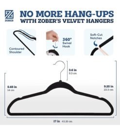 Zober’s non-slip. velvet hangers are designed with a 360?? swivel hook to make hanging clothes extremely convenient. |